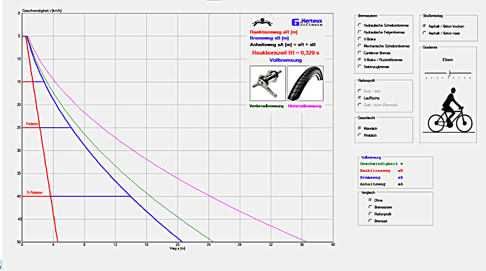 Violett: Anhalteweg nur Hinterradbremsung