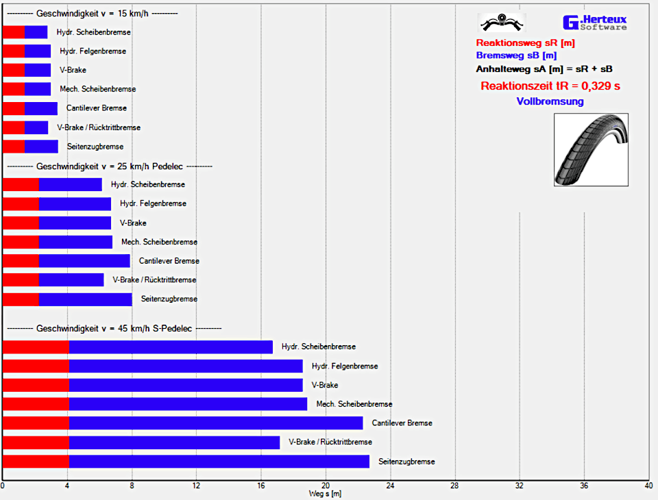 Blau: Anhalteweg bei Vollbremsung