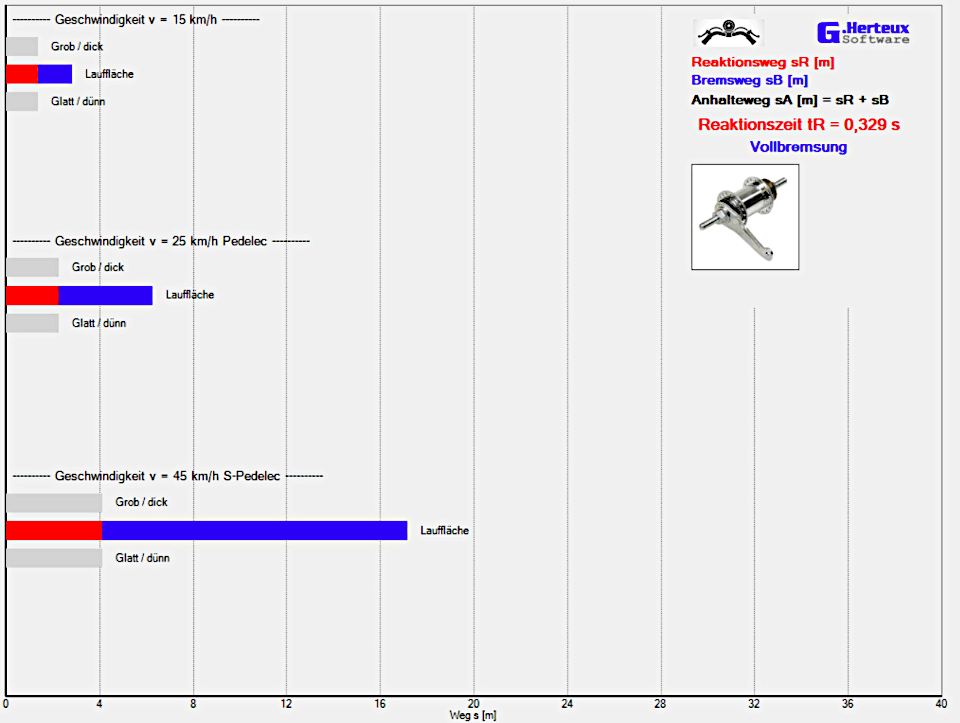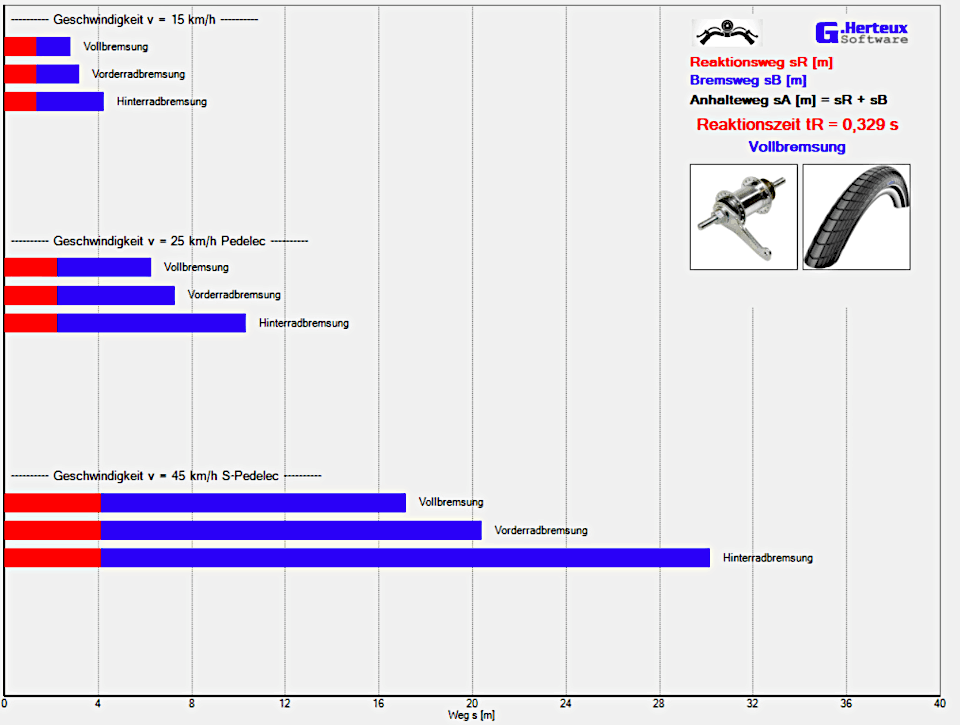 Grün: Anhalteweg nur Vorderradbremsung